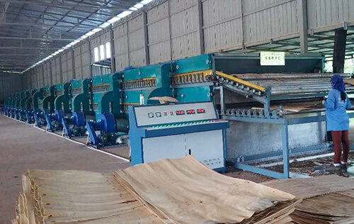 單層嘿嘿视频在线观看體係:單板幹燥機選用科學的烘幹原理,用離心風機直接把熱風爐內的熱風注入機內的上下風箱中,熱風通過上下風箱的噴嘴吹到工作中單板的上下雙麵,使單板受熱均勻,然後起到烘幹的作用。傳動體係:刨切單板縱向由進料口送入機內,由鏈條帶動上下兩排輥,相對工作,靠上輥的自重壓單板前行,單板通過兩輥和上下風嘴的一起,抵達烘幹和燙平的作用。